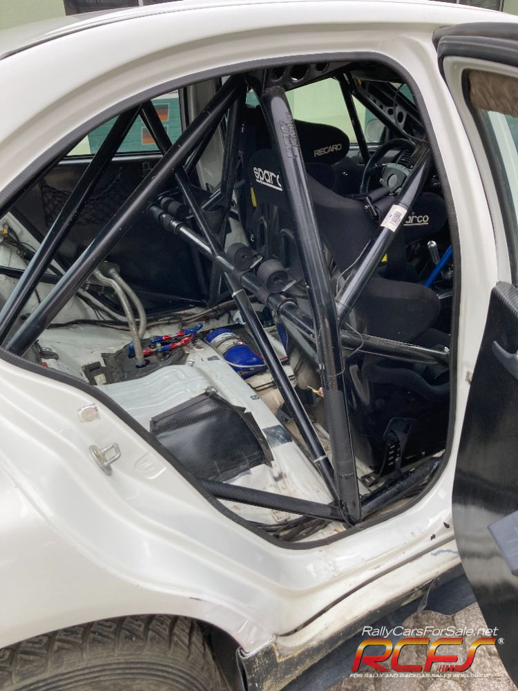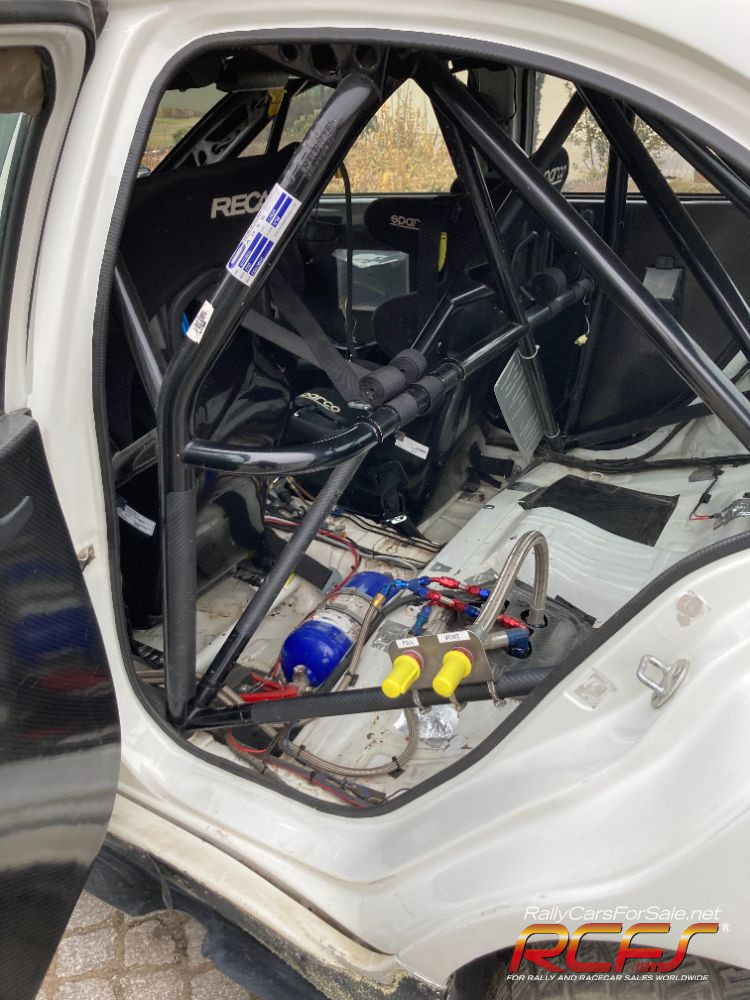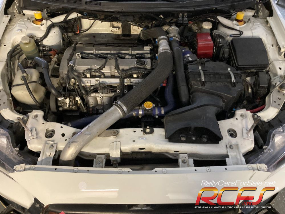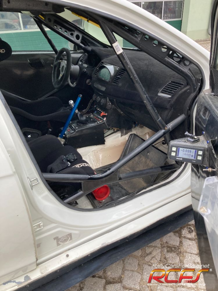 Group N Evo 10, Motec M800 for engine with display and shift light, mapped for Aral 102 on 33mm restrictor, 2-stage Anti-lag. Motec MDC2 ACD controller with 5 programs. Ralliart Diffs front and rear, Drenth dogbox, Protlum suspension, certified Custom cage rollcage, VO Brembo brakes, ap brake adjuster, flocked dash, small battery, lazer lamps, seats and belts out of date, fuel tank until 2028.