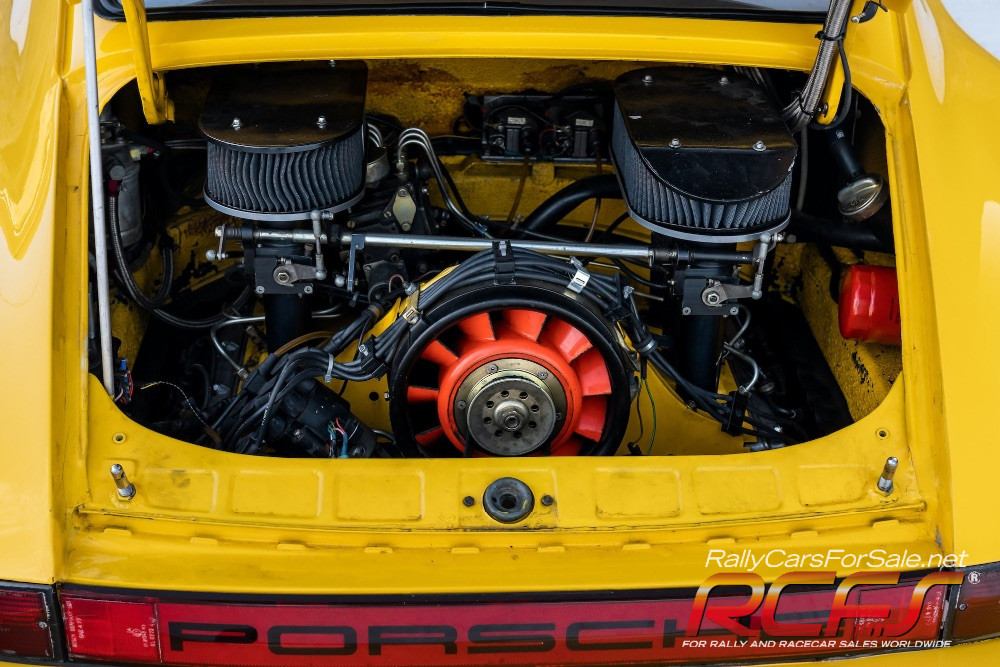 Since changing hands several times over the last decade. It has been kept in safe keeping as part of several different private Porsche collections with no competition usage. There has consistently been lots of money spent on maintenance and upkeep. Currently setup for Track, Rally or Road use, it is understood to be eligible for several prestigious international events. The Digital odometer indicates approximately 6,900 miles. The bodywork of this RSR IROC replica comprises a fibreglass bonnet, extended wheel arches and a ‘Lexan’ glass replacement kit. It is finished in Speed Yellow with black Carrera scripts and a black rear spoiler. There is also a white windscreen strip, four bonnet-mounted spot lamps, and a list of its Historic wins proudly adorning the front wings. The car rides on 15-inch Fuchs-style wheels, finished in black and shod with Michelin racing tyres in fitments 270/45/15 at the front and 335/55/15